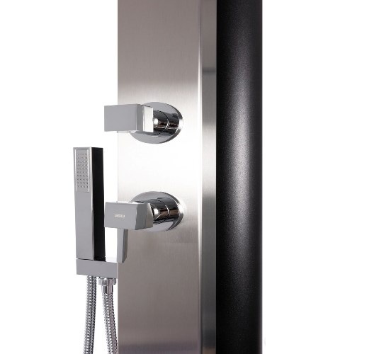 Miješalna baterija, glava za tuširanje, ručna glava za tuširanje i slavina za pranje nogu izrađene su od visokokvalitetnih materijala koji garantiraju dug vijek trajanja. Prednja ploča izrađena je od nehrđajućeg čelika AISI 304, čime tušu daje elegantan dizajnerski izgled.
